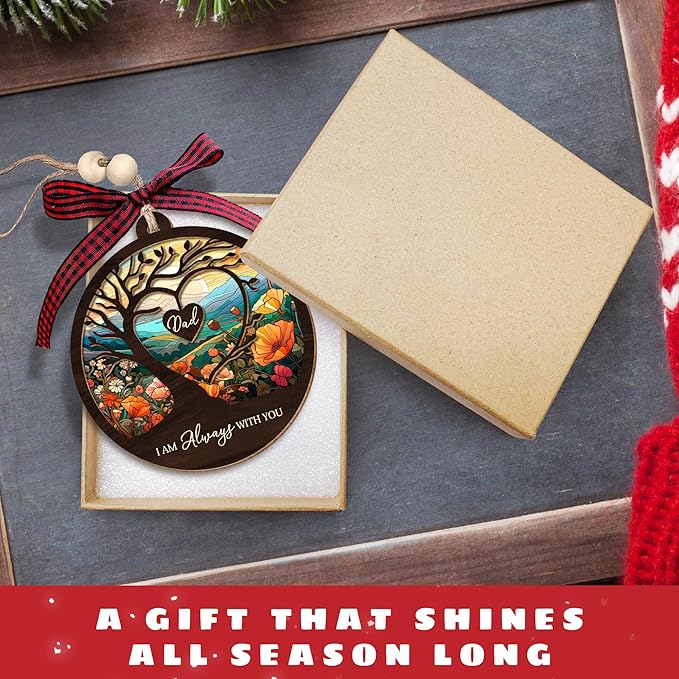 Dad Memorial Ornament - Memorial Ornaments for Loss of Dad - Bereavement Gifts - Memorial, Remembrance, Sympathy Gift - 2 Layer Wood Acrylic Suncatcher Ornament