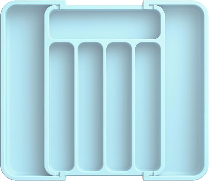 Aujen Silverware Organizer - Expandable Kitchen Drawer Organizer, Adjustable Utensil Organizer, Cutlery Tray for Forks, Knives, Multipurpose Kitchen Organizers and Storage Solution, Blue, Medium