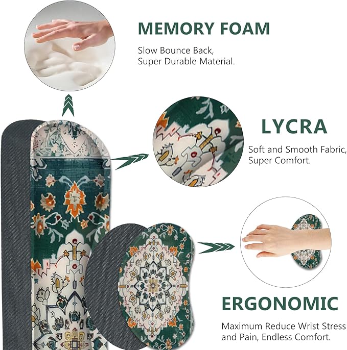 - 【ERGONOMIC DESIGN】: Keyboard wrist rest & mouse wrist support designed with comfortable memory foam and breathable material fabric, perfectly support your wrist while typing or sliding, minimizing relieve pressure and pain of your wrist, and maintaining wrist comfort and normal blood circulation.
