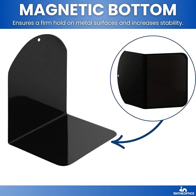- Bookends feature a magnetic base, offering extra grip to keep books securely in place, ideal for use on metal shelves or surfaces where extra stability is needed.