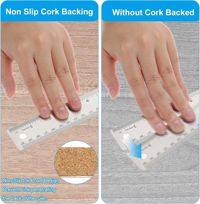 - Instruction: Non-slip cork backed design, keeps the ruler from slipping around when drawing straight lines on slippery materials, it can also effectively prevent the ink from penetrating the back of the ruler while drawing.