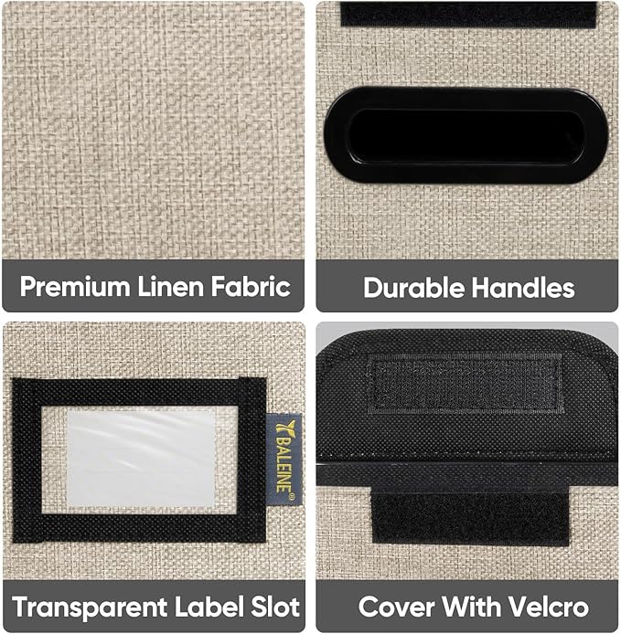 - [DURABLE MATERIAL] The outer layer of our filing box is crafted from high-quality polyester fabric and reinforced with thick cardboard in the middle. This construction ensures that the box maintains its shape and provides better bearing capacity for important documents and files. Its textured appearance can also serve as a stylish decorative element in any office or home