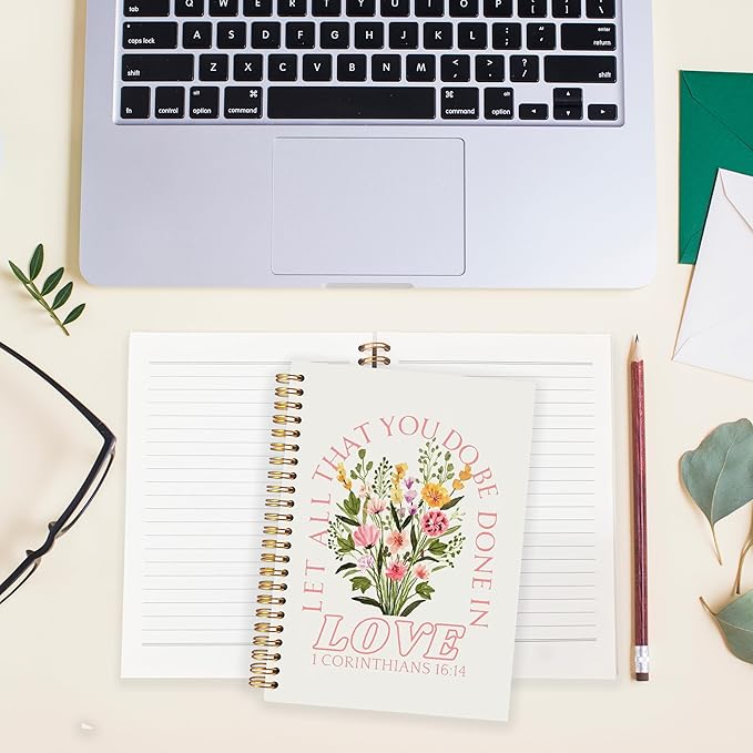 BearCake Prayer Journal for Women, Bible Journaling Notebook, Christian Gifts for Women, Let All That You Do Be Done in Love Prayer Journal for Women, Bible Journal Hardcover Spiral Notebook 5.5x8.3