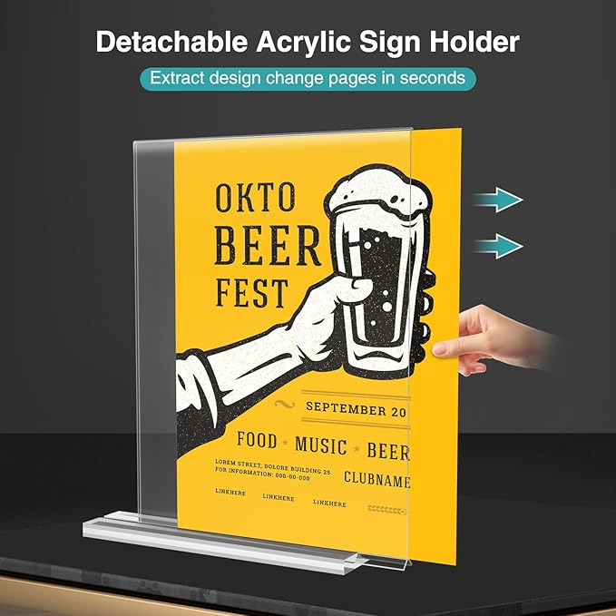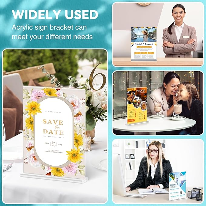 - Multifunctional Acrylic Stands for Display - 18-PACK 8.5x11 acrylic sign holder can meet your various daily needs. Not only can it be used to display menus and information promotion, but it can also be used as an acrylic picture frame to place your favorite photos.