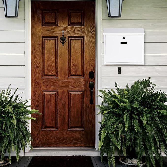 xydled Mail Boxes with Key Lock,Locking Mailbox Wall Mounted,Security Metal Mailbox Drop Box, Modern Large Capacity,Steel Cover Metal Postbox for House Home Outside, White, 14.2''x12.6''x4''