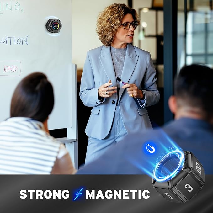 - Magnetic function: Our products with a magnetic base, has a very strong magnetic force, can be firmly adsorbed on the refrigerator, whiteboard or any steel surface, when you make a report and presentation at work, you can use it to time, when the time is over, the product will not shake to the ground, the magnetic force is very strong.