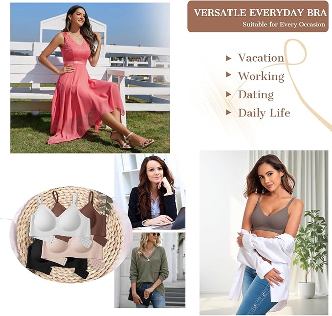 • Everyday Bras with Natural Lifting - The Invisible Bra with silicone support band is designed with consideration for the aesthetic appeal of the breast contour, providing a natural lifting effect. It conceals enough and even feels like a sports bra during low-impact sports. This bra not only enhances the beauty of the breast contour but also effectively improves the shape of the breasts for both younger and older women.