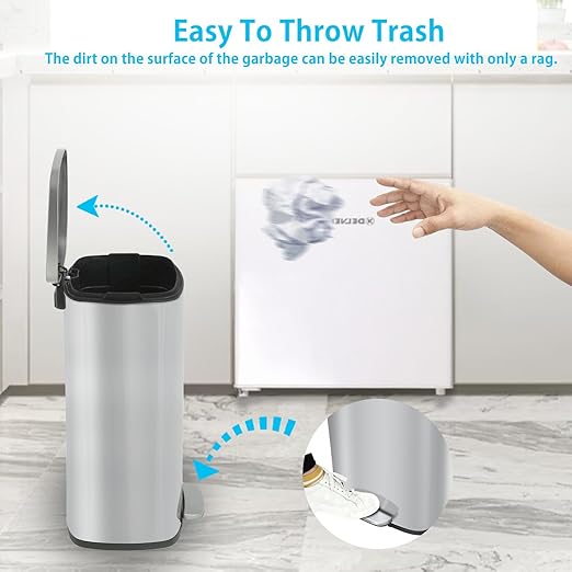 - High Quality Materials & Customer Service : This 13-gallon trash can is made of sturdy stainless steel metal that is watertight, scratch-resistant, and long-lasting. Its non-toxic and nontoxic design provides safety for both home and restaurant use. Ideal for keeping your space clean and sanitary.We provide excellent customer service; please contact us if you have any questions.We will assist you as quickly as possible and do our best to resolve your concerns.