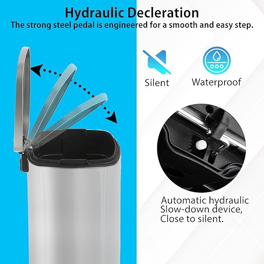 - Hand Free & Odor Control : Trash can with foot pedal allows you to dispose of trash without dirtying your hands or physically touching the trash can lid. The tight-fitting lid reduces odors, keeping your space fresh and the surrounding area smelling fresh and pleasant.