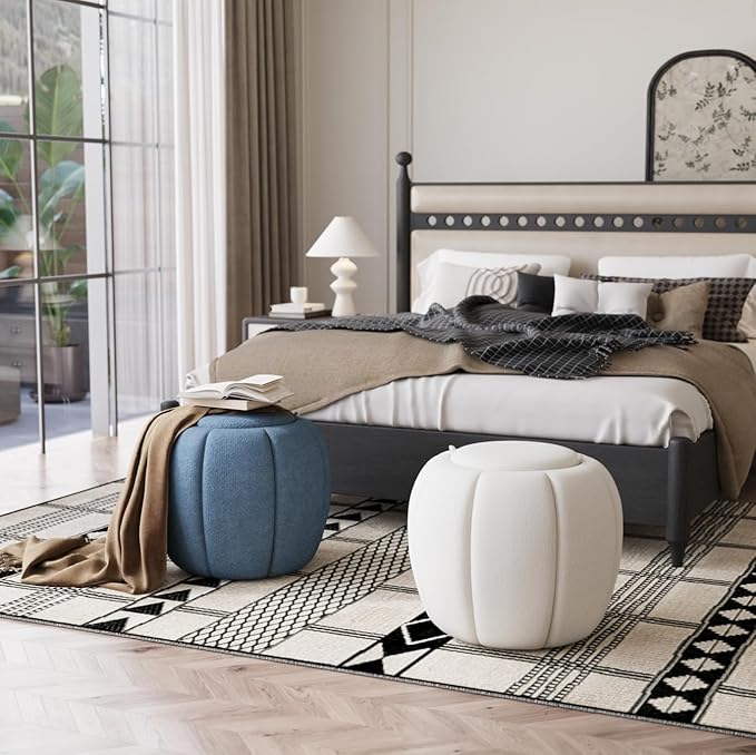 - 【Chic Design】 This Ottoman stool has a uniquely beautiful appearance, somewhat resembling a pumpkin. It also serves as a lovely decorative piece that makes your room more beautiful and unique. This makeup stool is made of a soft and comfortable material. Whether used as a footrest or a vanity stool, this stool provides maximum comfort.