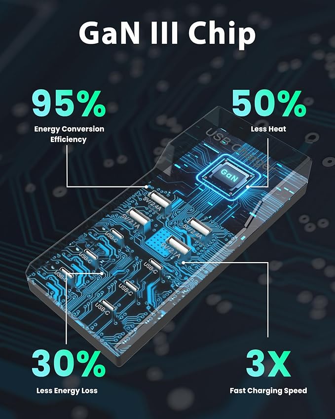 USB C Charger Block 10-Port USB-C Charging Station 6 USBC Ports & 4 USB-A Ports Total 50W USB Power Strip for Multi Devices for iPhone 16 17 15 14 13 12 Se, Galaxy, Pixel, Tablet, Camera, Headphones