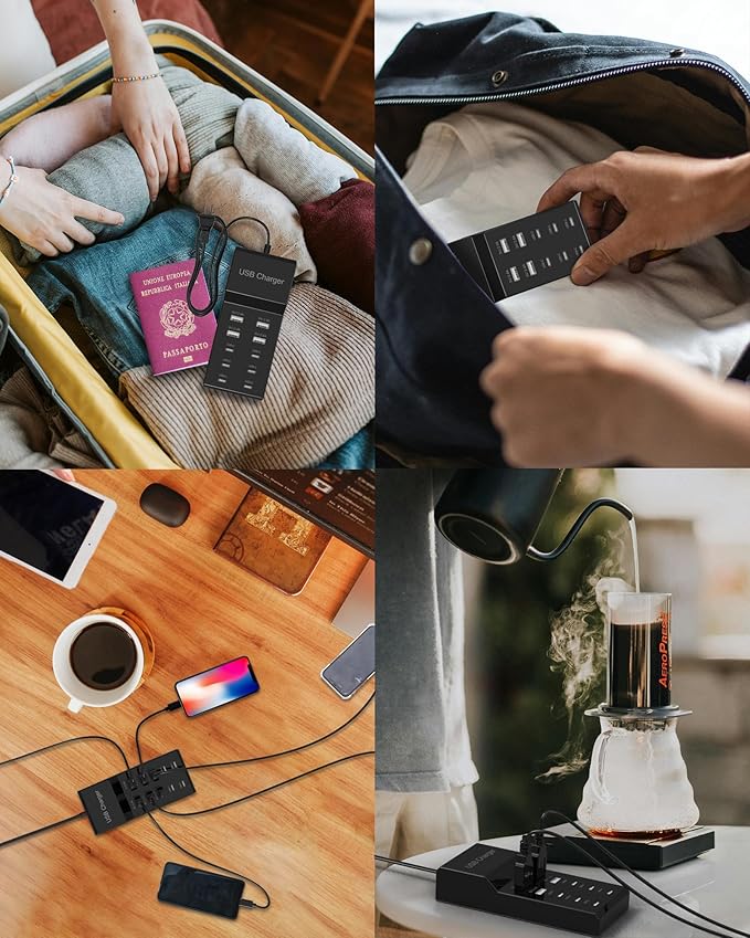 - 10 Ports USB-C Charger: It comes with 6 USB-C (5V/2.4A) Ports and 4 USB-A Ports (5V/2.4A), you're ready to charge 10 of your devices simultaneously. There are enough outlets when charging multiple devices.