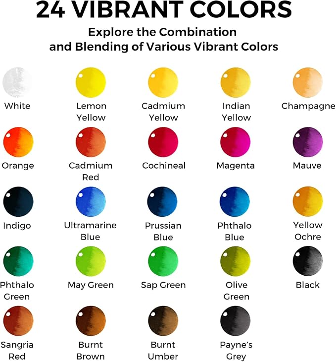 - ALL IN ONE KIT - Funto Mini Semi-Moist Watercolor Paint Set meets all you need with 24-color pigments, crossbody bag, travel watercolor journal, water brush, collapsible paint water cup, spray bottle, magnetic clip, an all-inclusive set.