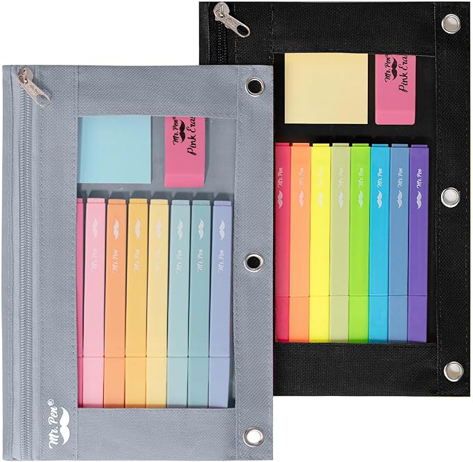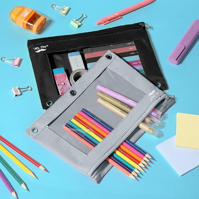 - Mr. Pen pencil pouch for 3 ring binder comes in a 2-pack, featuring sleek black and gray designs, perfect for organizing your stationery and supplies.