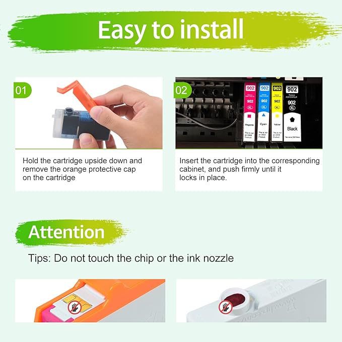 - 【Page Yield】: 850 pages per 902xl black ink cartridge and 850 pages per 902xl ink cartridges combo pack (at 5% coverage)