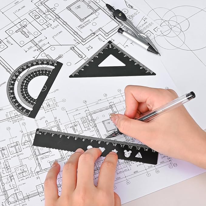 - Versatile Applications: Whether you're a student, artist, designer, or engineer, this aluminum alloy ruler set and drawing compass have you covered. These geometry tools cater to a wide range of needs, from drafting and drawing to measuring and marking