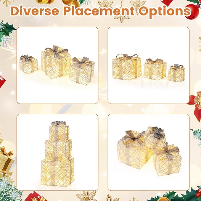 - 【Arrange As You Like】The appealing bows on each box can be removed with hook and loop fasteners. With detachable bows and the flexibility to arrange the boxes in any configuration you desire, you can create a personalized holiday display that suits your style.