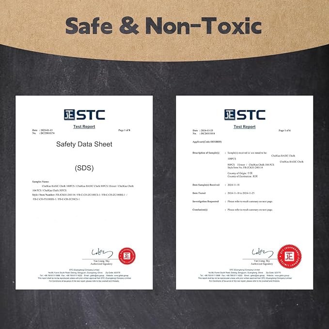 - Safe & Non-Toxic: At Chalkaa, we prioritize the health of our users. Our chalk is non-toxic, passes safety certifications, and meets various standards, making it suitable for all age groups. Whether you're a teacher giving a long lecture or a child engaging in creative art projects, our chalk is safe and healthy to use.