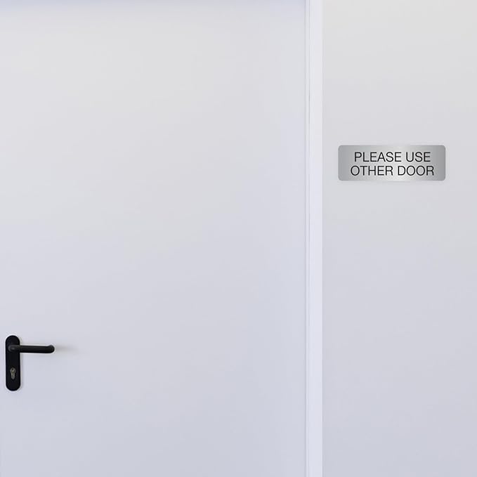 Silver Please Use Other Door Sign / 3" x 9" Easy Adhesive Door Wall Mount/Restaurant Small Business Alternative Exit Room Sign/Made In The USA