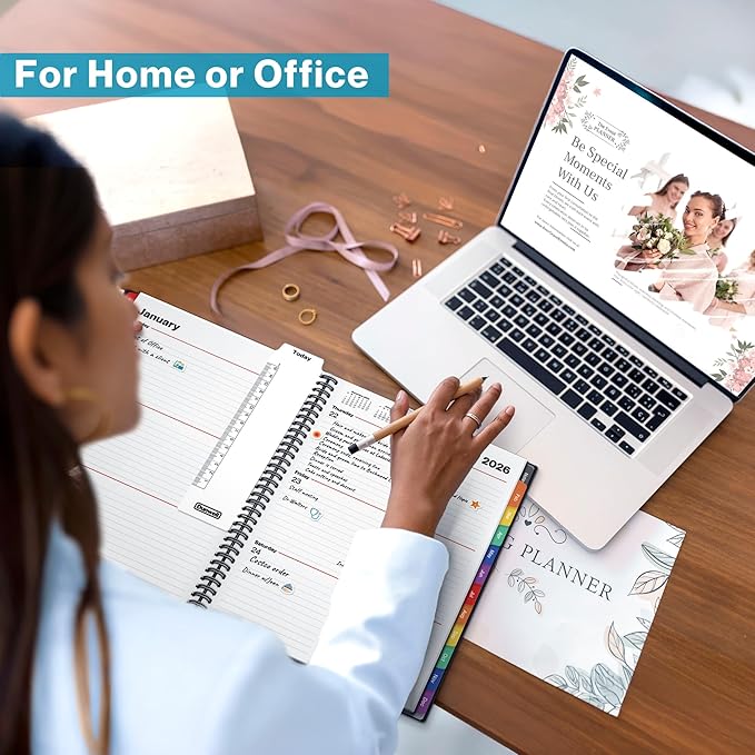 - LARGE 8.5x11 PLANNER: Jan-Dec 2026 format ideal for office and business. Bonus stickers make organizing fun. Professional design for everyday use.