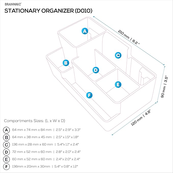 - EFFICIENT ALL-IN-ONE ORGANIZER: Features six compartments to neatly store pens, pencils, scissors, staplers, and more. Perfect for offices, home workspaces, and creative studios, helping you keep essential items within reach and your desk clutter-free.