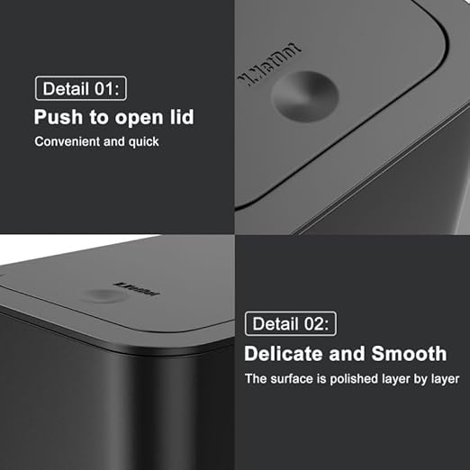 - Traps Smells Inside: This small black bathroom trash can is neat and tidy. Clean lines and smooth surfaces of diaper trash can make it easy to keep clean and maintain. Under sink trash can traps garbage smells inside, so your space smells fresh and clean all the time. With this pop up trash can with lid, you can say goodbye to unsightly messes and unpleasant odors