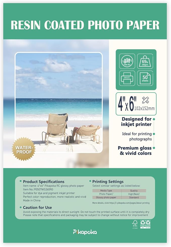 - Archival-Grade Quality: Pikapoka 4x6 RC glossy photo paper is more durable due to its protective resin coating. Can last for years without fading