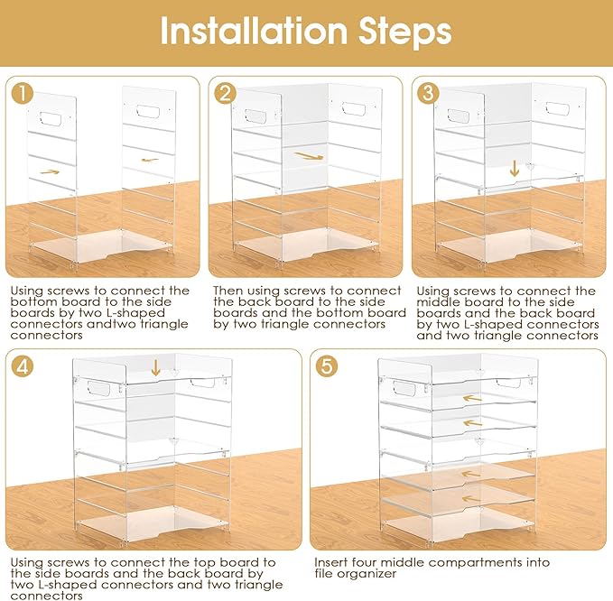 - Premium Quality Material: This paper tray organizer is crafted from high-grade transparent acrylic, offering exceptional impact resistance and long-lasting durability. Its robust construction ensures that it remains free from deformation or breakage even with extended use. The transparent design not only allows for clear visibility of your documents but also enhances the modern aesthetic of your office space, promoting an organized and efficient workspace.