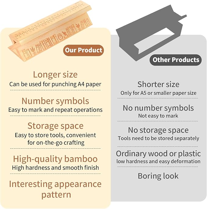 - User-Friendly Design: The ergonomic design of the bamboo cradle ensures ease of use. Simply fold your paper, place it on the cradle, and use the awl to punch holes effortlessly. The intuitive setup, combined with the included instruction manual, makes the bookbinding process smooth and stress-free, even for extended crafting sessions.