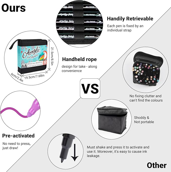 - Convenient design - SAKEYR dual-tip acrylic pens feature an advanced cotton core nib that eliminates the need for multiple shakes and presses required by ordinary paint pens. Just open the pen cap and start creating. Creates an easy kids-adults interaction environment.