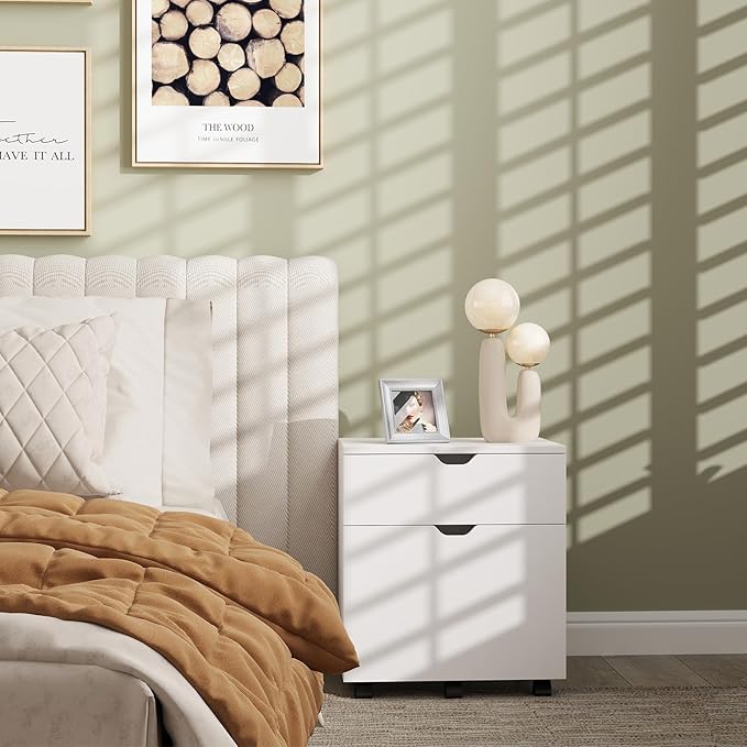 HollyHOME 2-Drawer Wood File Cabinet, Under Desk Cabinet for Home Office, Rolling Storage Shelf for Home, Printer Stand, for A4, Letter-Size, 11.8in Hanging File Folders, White