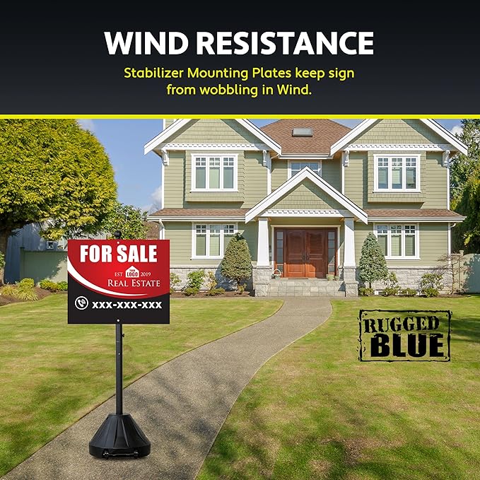 - Stable Display Solution: This steel pole stand has a stabilizer mounting plate to keep sign from wobbling, stability plates & the rounded base can be filled with 3 gallons of water or sand for added stability