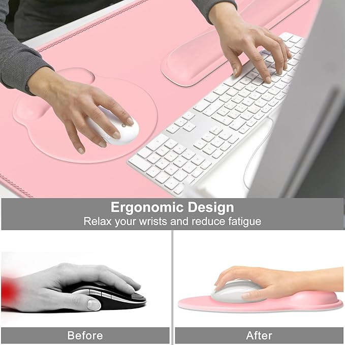 Dapesuom Large Gaming Mouse Pad, Pink Mouse Pads with Wrist Rest Wrist Support, 4in1 Big XXL Desk Mat Desk Pad + Ergonomic Mousepad + Memory Foam Keyboard Mat Wrist Rest + Coaster Set for Computer