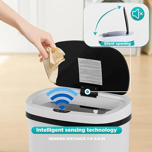 - Smart Motion Sensor : Our trash can uses smart sensing technology to reduce unnecessary openings.Detects hand movement or presence nearby and lifts the lid automatically, making trash disposal more convenient and hygienic.