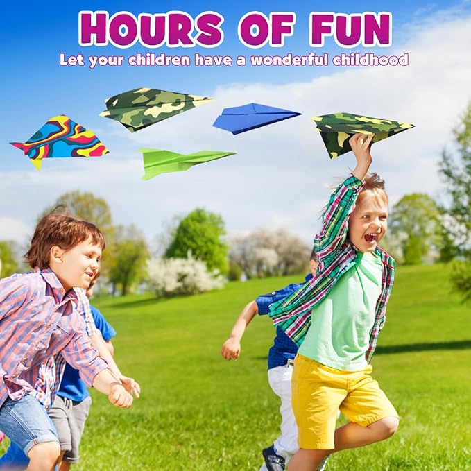 - Large Toy Airplane Set: The airplane art craft kit includes 70 sheets of large size 8.1inch * 10.7inch folding origami paper (50 sheets patterned paper and 20 sheets solid colored paper), providing kid with rich choices to stimulate creativity and design abilities. Easy-to-understand paper airplane design instructions to help preschool children learn different paper airplane folding techniques, develop their hands-on skills and logical thinking