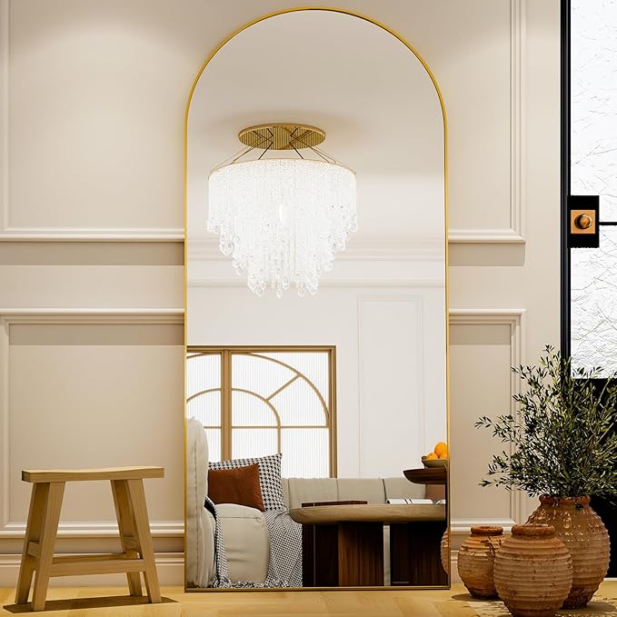 - Elegant Arched Design: This full-length mirror features a stunning arched top, adding a touch of sophistication to any room. Its graceful curves make standing mirror an eye-catching decorative piece that complements various interior styles, from modern to classic