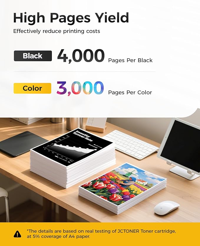 - The latest chip version: The JCTONER toner cartridges are equipped with the latest version of built-in chips, ensuring perfect compatibility between each toner cartridge and the printer. This enables you to print efficiently while maintaining stability and reliability, making installation convenient without the need for manual adjustments. All JCTONER toner cartridges have undergone strict quality testing and have obtained ISO9001 certification. High-quality toner cartridges can meet the demand for high printing volume. The fine toner ensures clear and stain-free printing results and extends the lifespan of the printer. You can purchase with confidence.