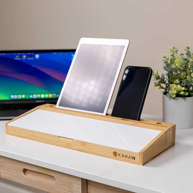 - Holds Your Phone or Tablet: Long grooved slot on the top holds your phone or tablet with a slight angle to view your devices comfortably.