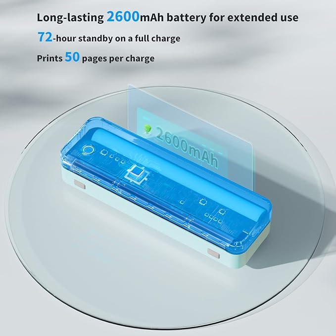 - Crisp Prints & Long Battery Life: Enjoy sharp, clear prints with up to 3 hours of continuous printing or 360 sheets on a single charge. Boasts a 90-day standby, perfect portable wireless printer for busy professionals and students.