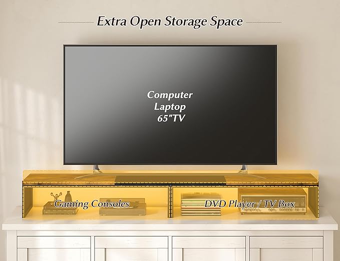 - 【TV Stand for 65 Inch TV】Spacious design is providing ample space for large screens. It is designed to accommodate screens of 55, 60, 65 inches, also suitable for your cable box, Xbox One, PS5, or other media players. It can also be used as a computer stand, that provides robust support for wide and dual monitors