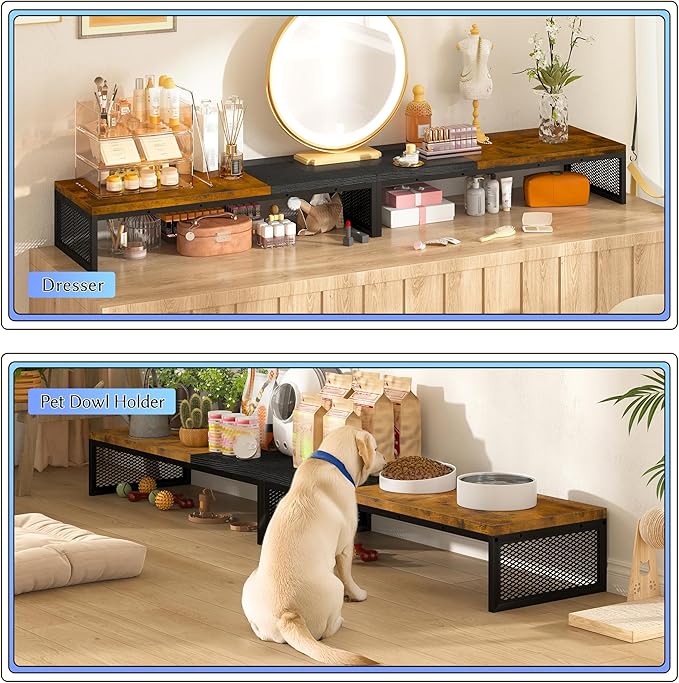 - 【Multi-Purpose Stand】Monitor Shelf dimensions 55.2"*11.9"*6", holds up to 140 lbs, you don't have to worry about collapsing or shaking during use. It can be used as computer monitor stand, tv stand, printer stand, laptop stand etc. The instructions show 4 different installation methods, you can choose according to your needs