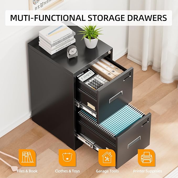 - 【Stable Construction】: Metal file cabinets are made of thicker cold-rolled metal material, more durable for long term use. Also, 2 drawer filing cabinet is designed with anti-tilt locking system, which means that 1 lock with 2 keys can lock all drawers, preventing other drawers sliding out and fix cabinets