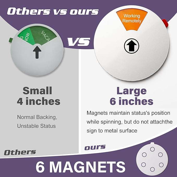 - Versatile Use: Perfect for office environments, home offices, or co-working spaces, the Status Spinner helps maintain professionalism and fosters a respectful work atmosphere by clearly communicating your current status.