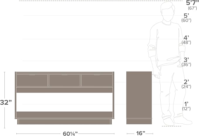 - ASSEMBLED DIMENSIONS & WEIGHT: Console 15.75"D x 60.25"W x 32"H, Total weight- 116 lbs., All pieces arrive ready to assemble in 1 Box