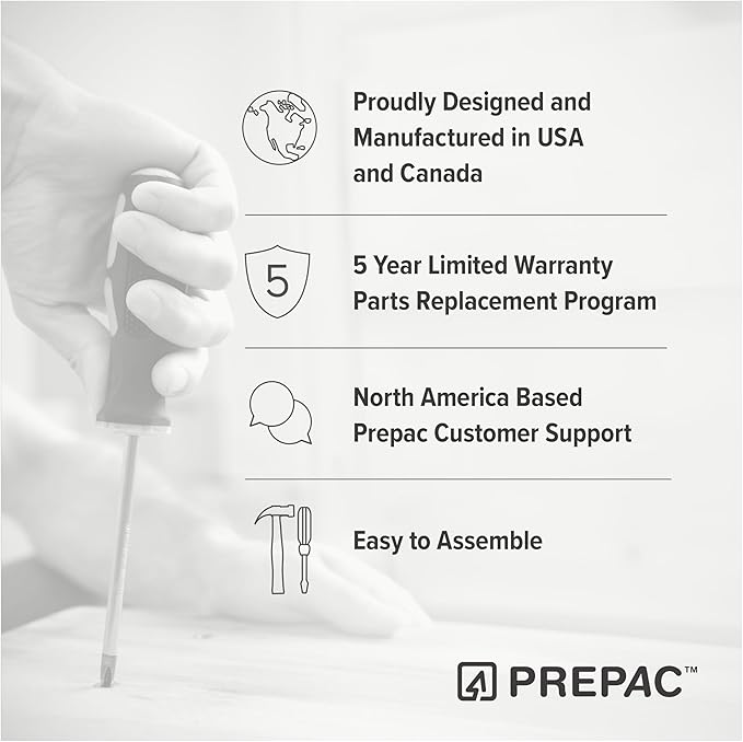 - 5 YEAR WARRANTY: All Prepac products are backed by our 5 Year Limited Warranty- if your product arrives damaged or missing parts, contact us for replacement parts at no charge.