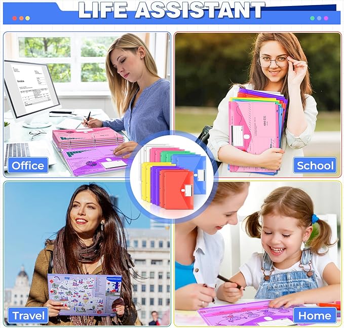 - 【Easy identification】Colorful transparent binder folders with 7 assorted colors,It’s easy to organize and distinguish your paper with a different color. Plastic Envelopes have a pocket for labels to distinguish documents easily.