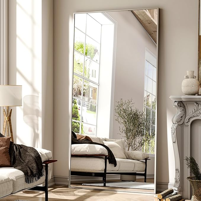 - ALUMINIUM ALLOY FRAME: Our full-length mirrors are crafted with high-quality aluminum alloy frames for durability. The back is coated with an explosion-proof film for added safety. The slim, lightweight design makes it easy to move. Additionally, the high-quality metal frame is resistant to corrosion, making our full-length mirror suitable for bathroom use