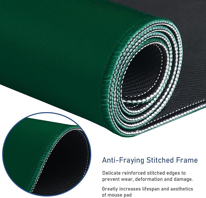 Gaming Mouse Pad with Stitched Edges, Durable Non-Slip Natural Rubber Base, Waterproof Computer Keyboard Pad Mat for Esports Pros/Gamer/Desktop/Office/Home - Green