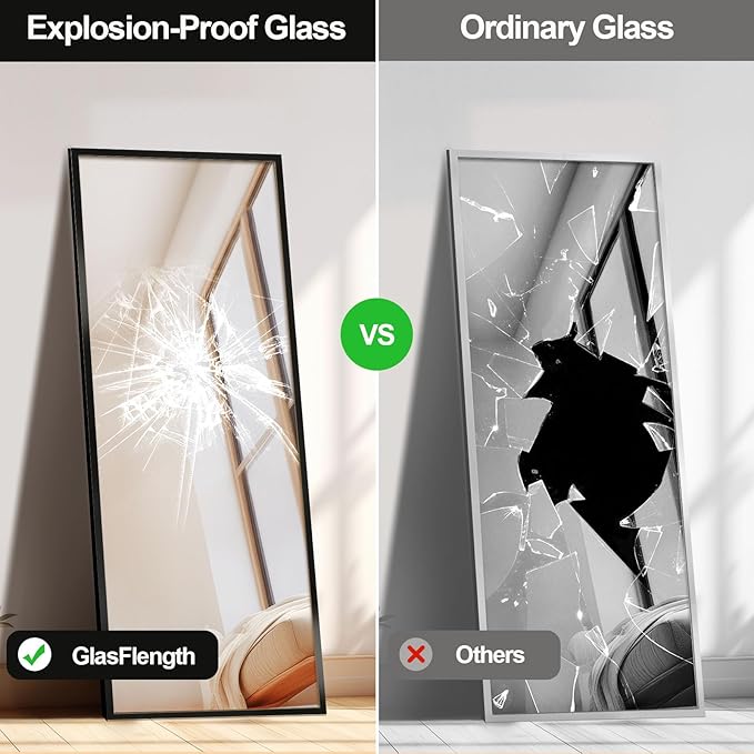 - Full-Body Reflection: The standing mirror is 64" in length and 21" in width, large enough for you to see your entire figure in a single glance. It's more than a mirror—it's a decorative statement piece that lifts your space and mood
