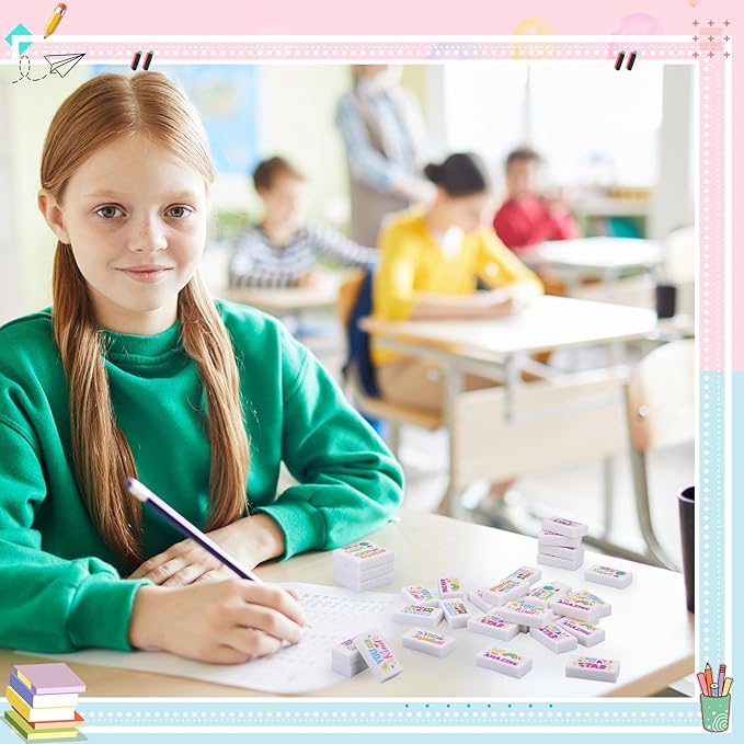 - Inspirational Features: what sets our drawing eraser apart is the printed inspirational cute words on each item; Using these erasers not only helps you to correct mistakes, but also serves as a constant reminder to stay motivated, making every writing or drawing session inspiring and fun filled